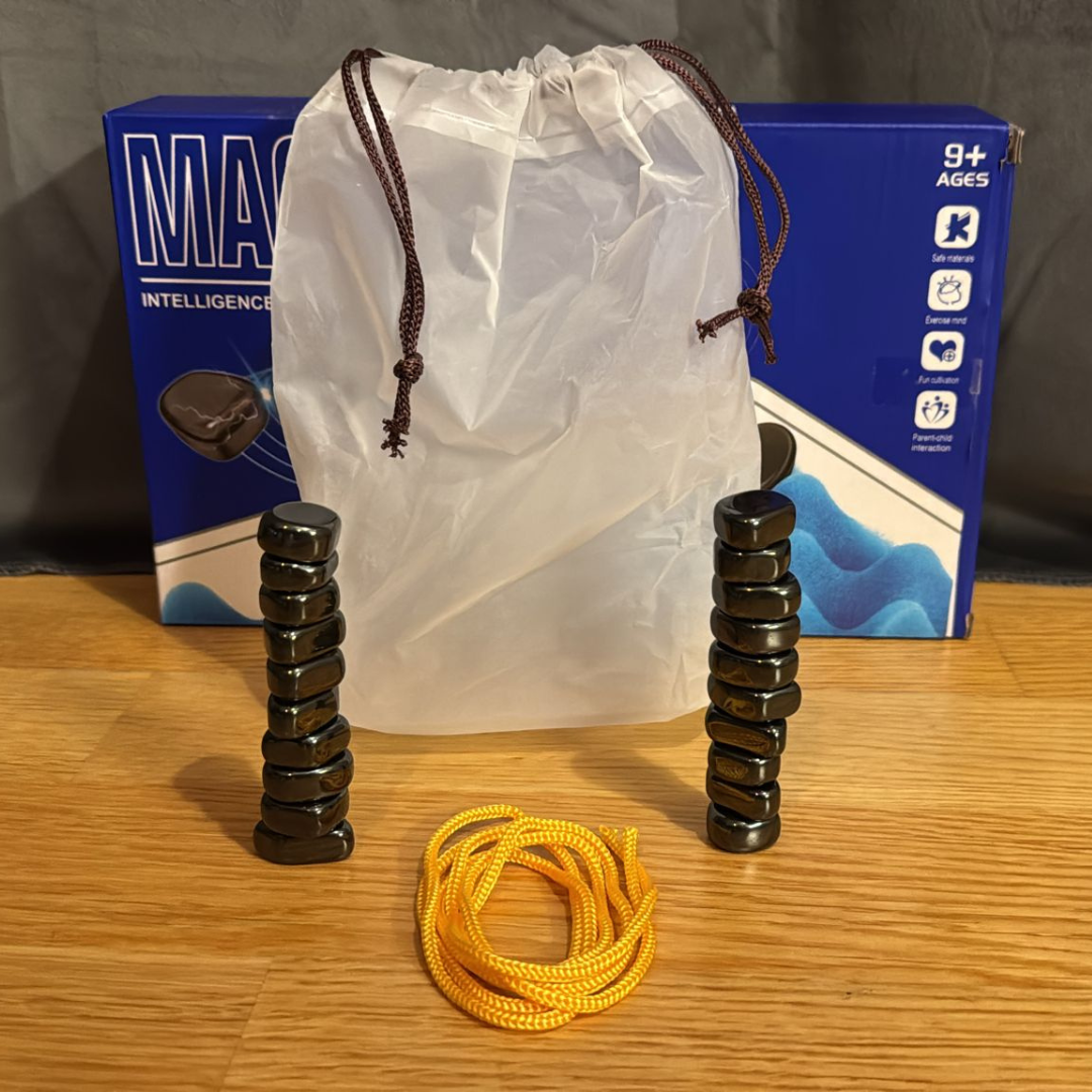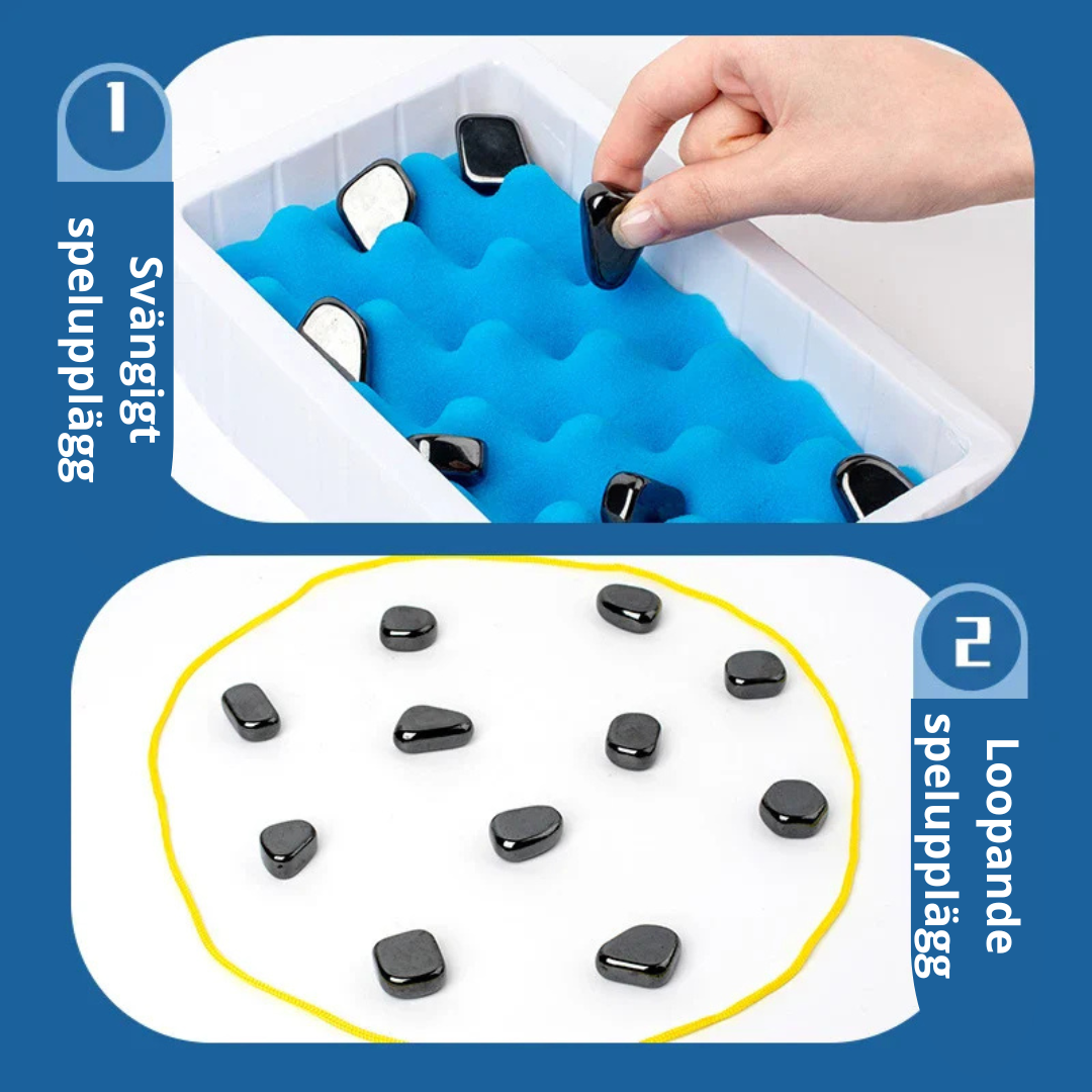 Med ett enkelt spelsnöre och magiska magneter är spelet lätt att komma igång med, men riktigt utmanande! Testa tålamodet och precisionen när ni försöker placera magneterna utan att de dras ihop – varje omgång bjuder på spänning och skratt!